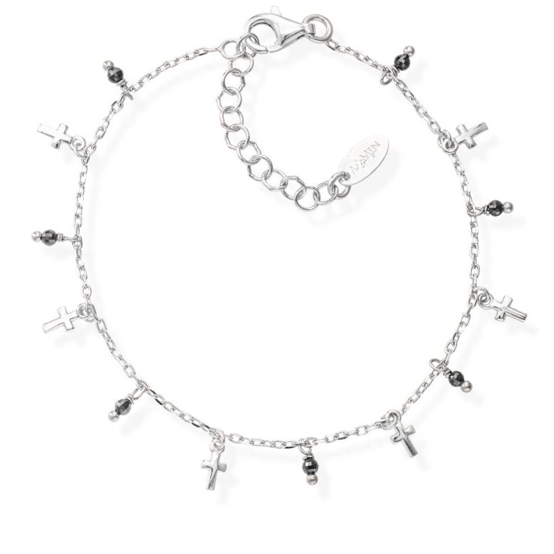 Marke: Amen; Kollektion: Candy Charm; Artikelcode: BRMICRBN; Produkttyp: Armband; Geschlecht: Frau; Material: Silber, Schwarze Kristalle; Farbe: Silber; Thema: Kreuze; Größe / Maßnahme: einstellbar von 16 bis 19 cm.