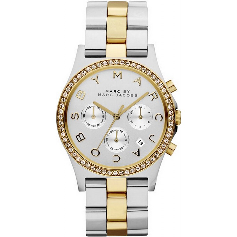 Marca: Marc Jacobs; Colección: Henry; Código del Artículo: MBM3197; Tipo de producto: Reloj; Género: Mujer; Funciones: Cronógrafo, Fecha; Tipo de Movimiento: Cuarzo / Bateria; Material de la Caja: Acero de Dos Tonos; Color de la Caja: Acero y Oro; Diámetro de la Caja Ø: 38 mm; Tipo de Esfera: Analógica; Color de la Esfera: Plata; Material de la Correa: Acero de Dos Tonos; Color de la Correa: Acero y Oro; Resistencia al agua: 50 metros / 5 bares.