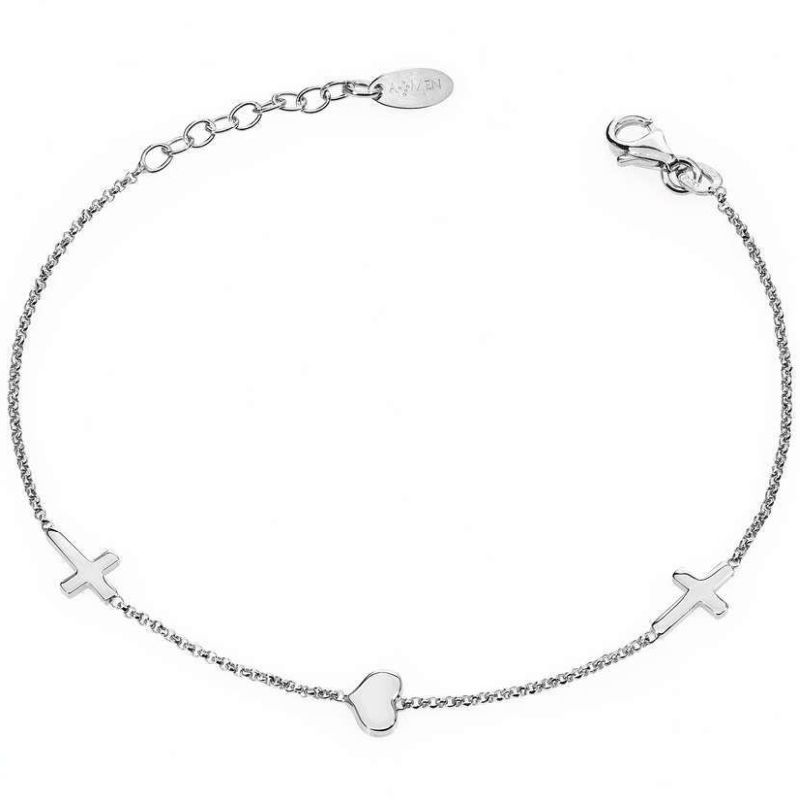 Pulsera de Plata Amen con corazón y cruces para mujeres BRCHB